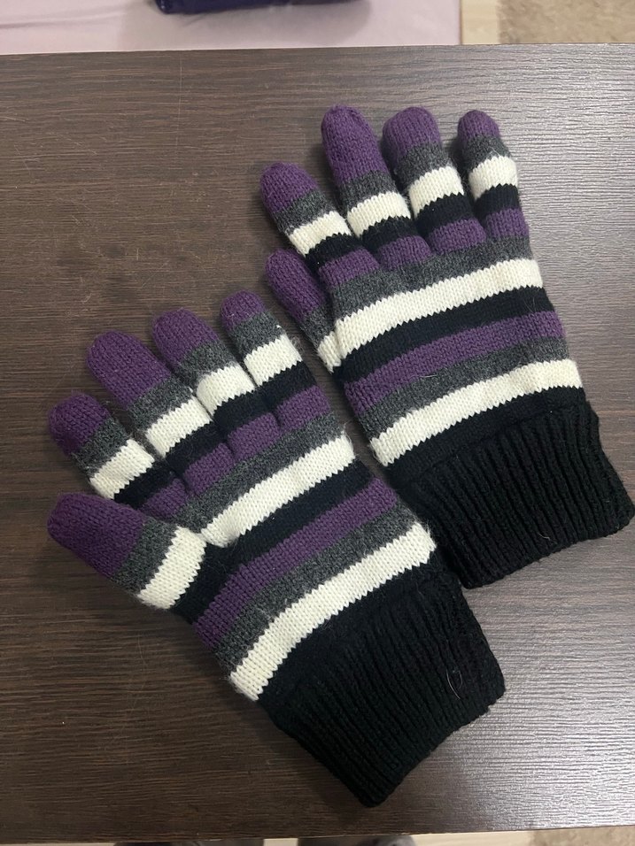 İçi polarlı çizgili sıcak tutan eldiven. Mor beyaz siyah gri renklerde.