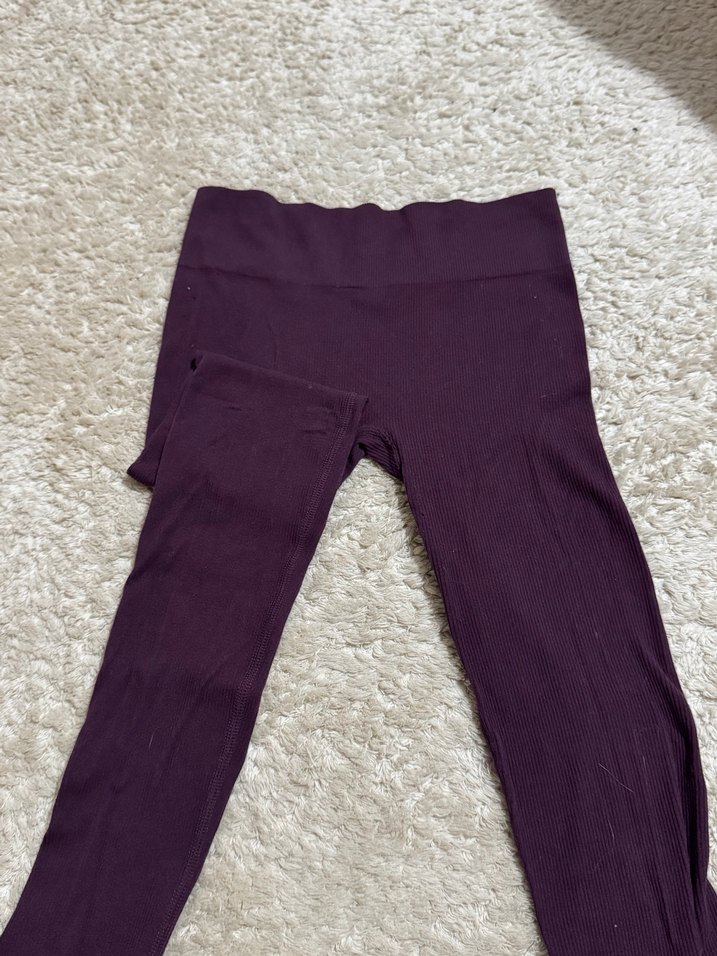 Kadınlar için mor renkte, dar kesim uzun tayt. Yumuşak sentetik kumaştan üretilmiş, günlük sokak stili için uygun, zahmetsiz şıklık sunar.