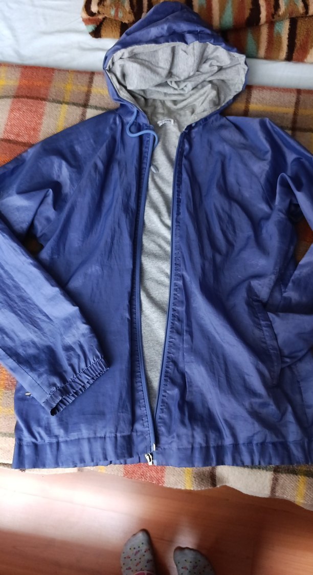 Kadınlar için resimlerde mavi gibi görünse de "mor" dur fermuarlı, normal boy, naylon kumaştan rüzgarlık. Geniş kesim, uzun kollu ve kapşona sahiptir. Günlük kullanıma uygundur. ️