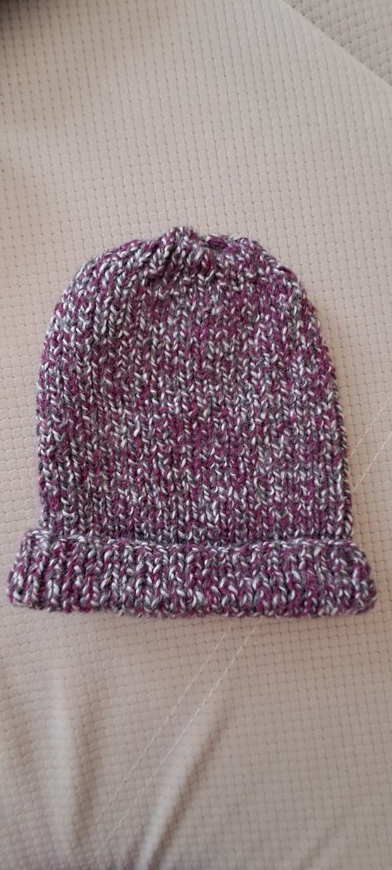 Kadınlar için mor ve gri tonlarında örgü, sade ve rahat bir tarz sunan örgü bere.
