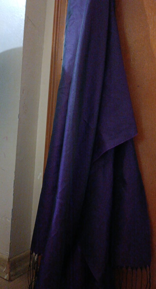 Kadınlar için mor renkte, ipek görünümlü, drapeli bohem tarzda, rahat ve sade şal.
