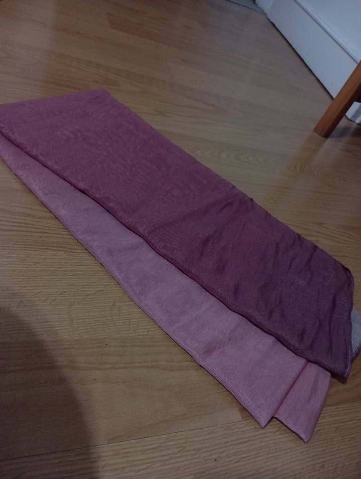 Kadınlar için mor renkte, ipek görünümlü, drapeli şal. Rahat ve bohem tarzı için uygundur.