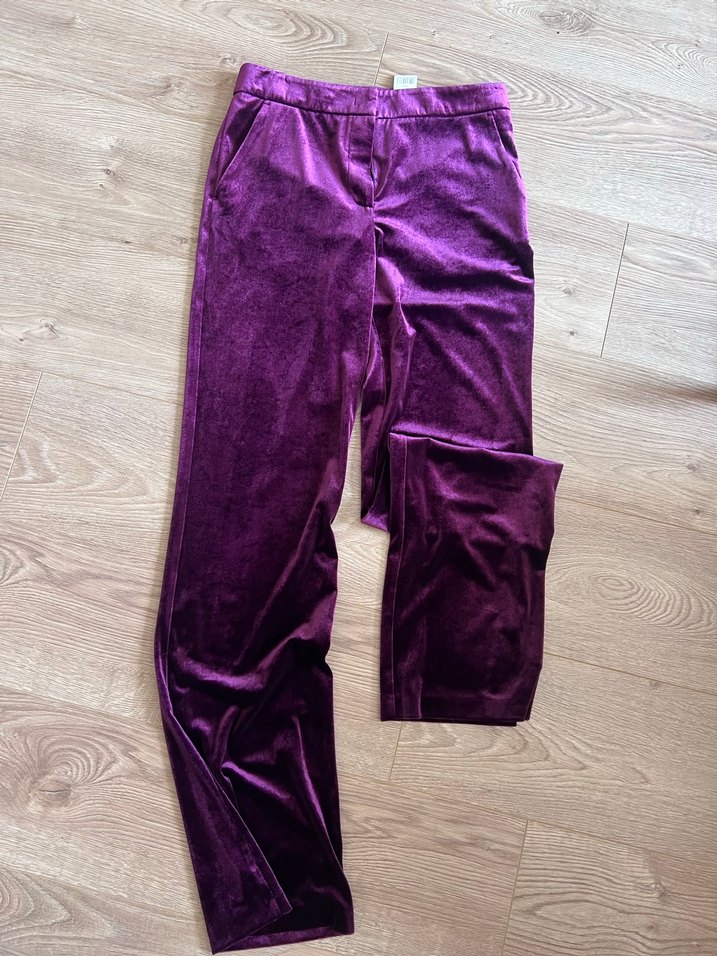 Kadın Mor Kadife Rahat Kesim Pantolon