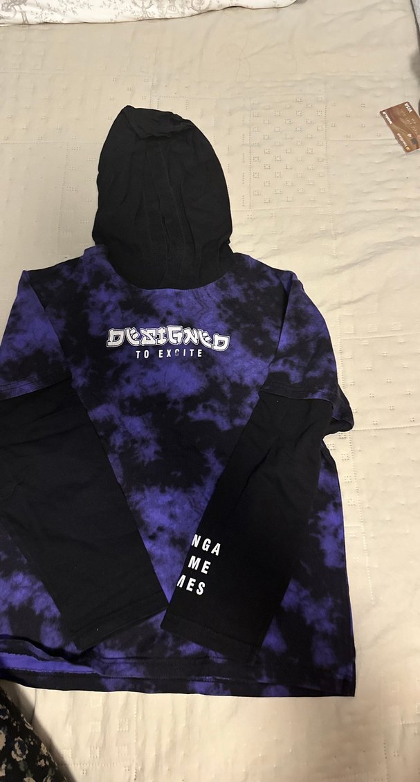 Mor batik desenli, kapüşonlu ve uzun kollu kadın sweatshirtü. Rahat kesimi ve baskılı detaylarıyla günlük kullanıma uygundur.