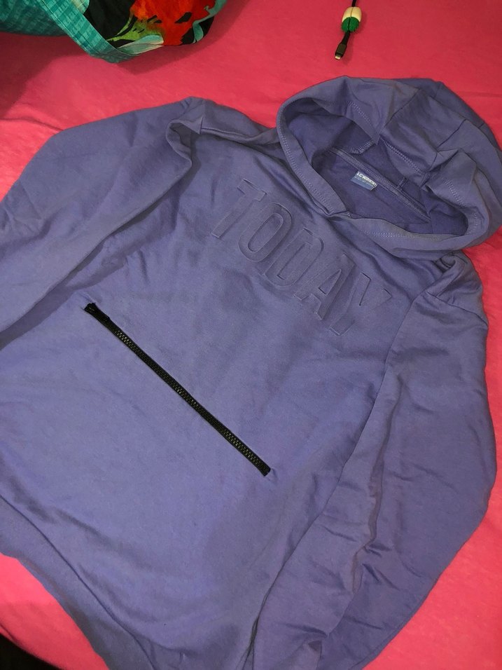Mor renkli, fermuarlı ön cep ve yuvarlak yaka detaylı kadın sweatshirtü. Yumuşak ve sıcak kumaştan, uzun kollu ve bol kesimdir. Günlük kullanım için uygundur. 12-14 yaş
