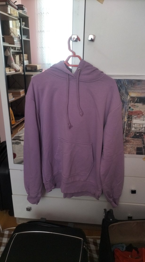Mor renk, uzun kollu, salaş kesim ve kapüşonlu bu sweatshirt, yumuşak ve sıcak kumaştan üretilmiştir. Rahat ve günlük kullanım için uygundur.