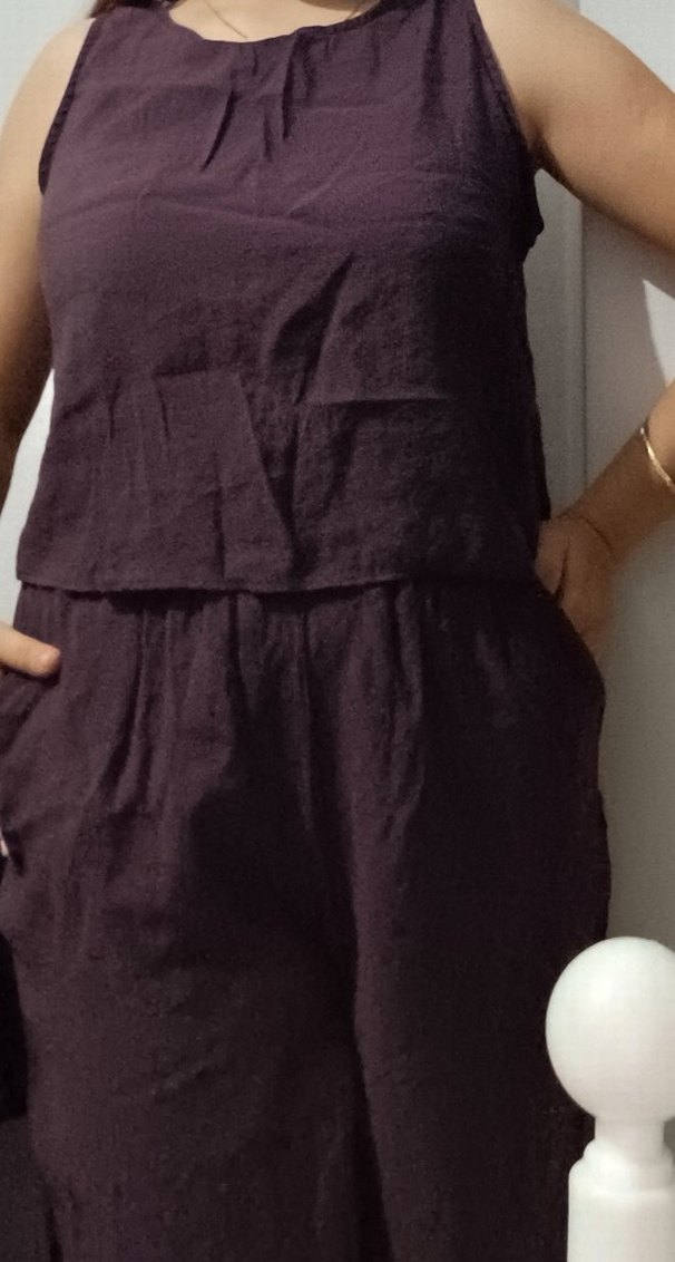 Kadın Mor Keten Mini Tulum