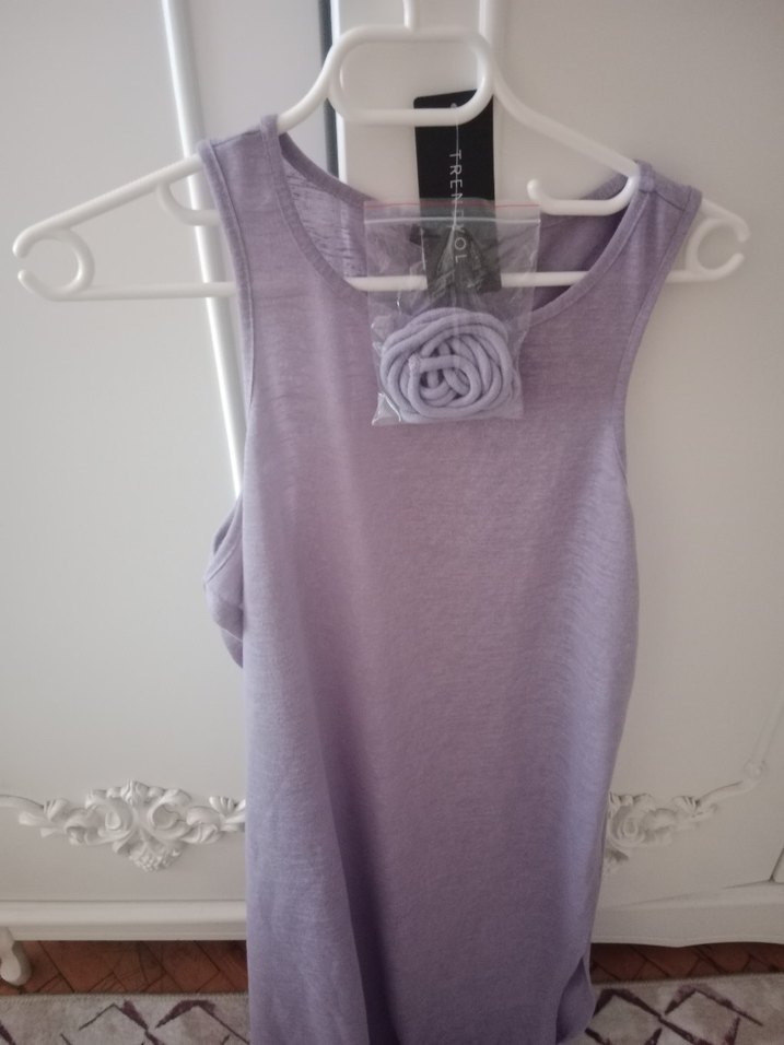 Mor renkli, keten kumaştan, salaş kesim ve yuvarlak yakalı kolsuz pareo plaj giyim. Hafif fırfır detayıyla günlük kullanıma uygun rahat bir parça.