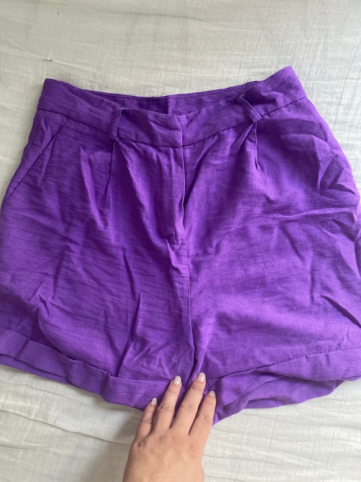 Kadın Mor Keten Şort