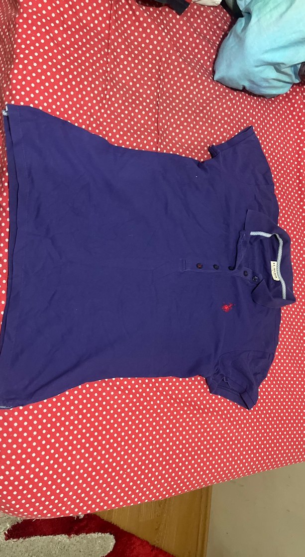 Erkekler için fitted kesim, kısa kollu, yakalı mor polo tişört. Düğmeli detaylı, sentetik dokulu kumaştan, günlük kullanıma uygun şık parça.