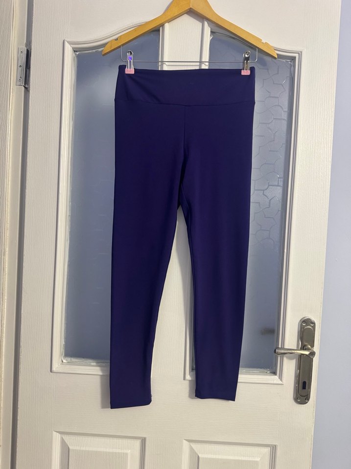 Mor renkte, sentetik kumaştan yapılmış, spor ve günlük kullanıma uygun, sade ve şık midi tayt.