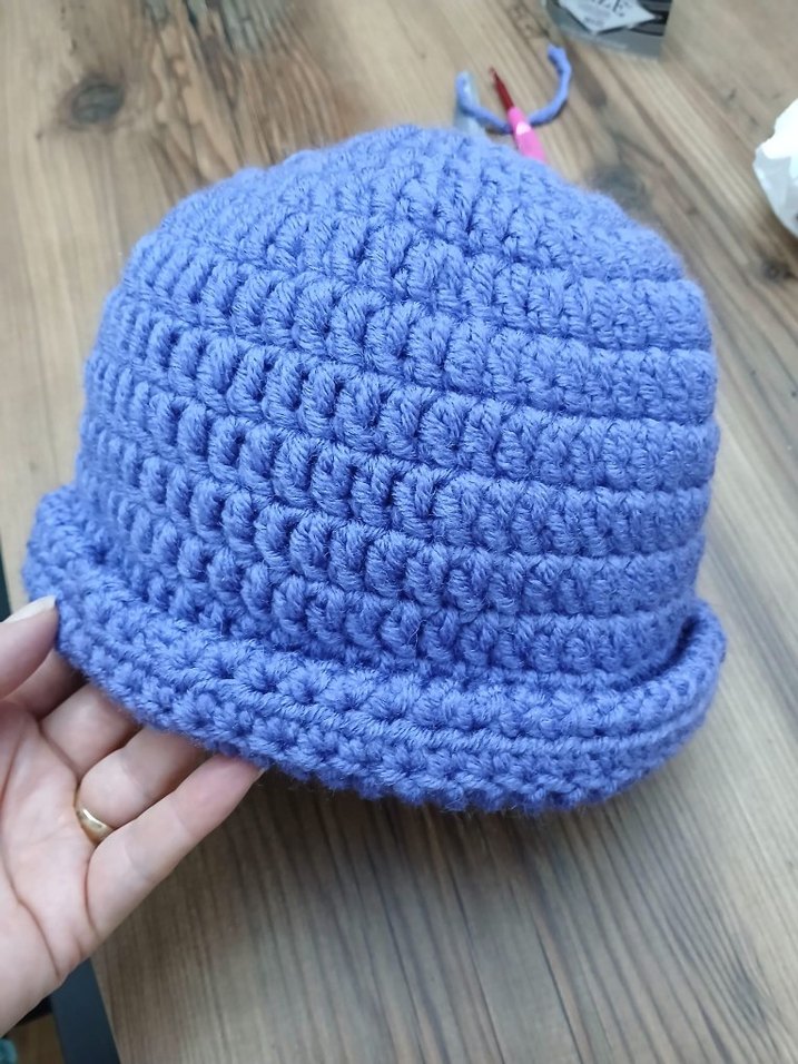 Kadınlar icin mor renkte, yumuşak örgü dokusuna sahip, rahat ve sade tarzda bere. fotografta mavi gibi ama mor renktedir.
