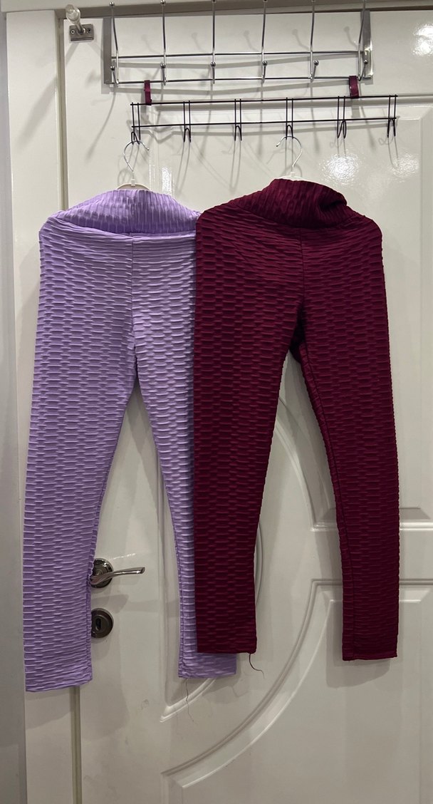 Kadınlar için pilili dokulu, koyu mor renkte, midi boy ve sentetik kumaştan yapılmış dar kesim spor tayt. Spor ve günlük kullanıma uygundur. ♀️ikisi 134