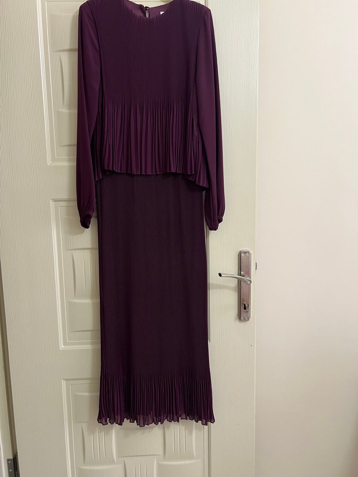 Kadın Mor Piliseli Uzun Elbise