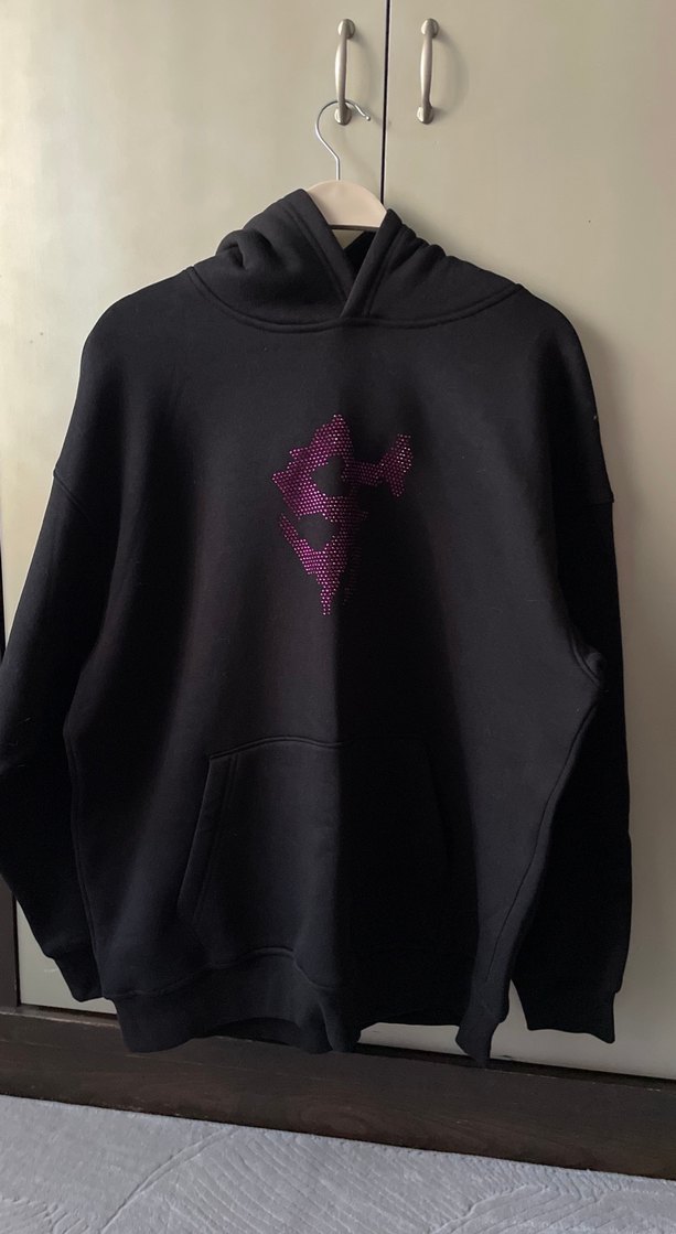 Kadınlar için koyu mor, pul işlemeli baskılı desenli, yuvarlak yakalı ve uzun kollu bol kesim sweatshirt. Yumuşak ve sıcak kumaştan, günlük kullanım için uygundur.
