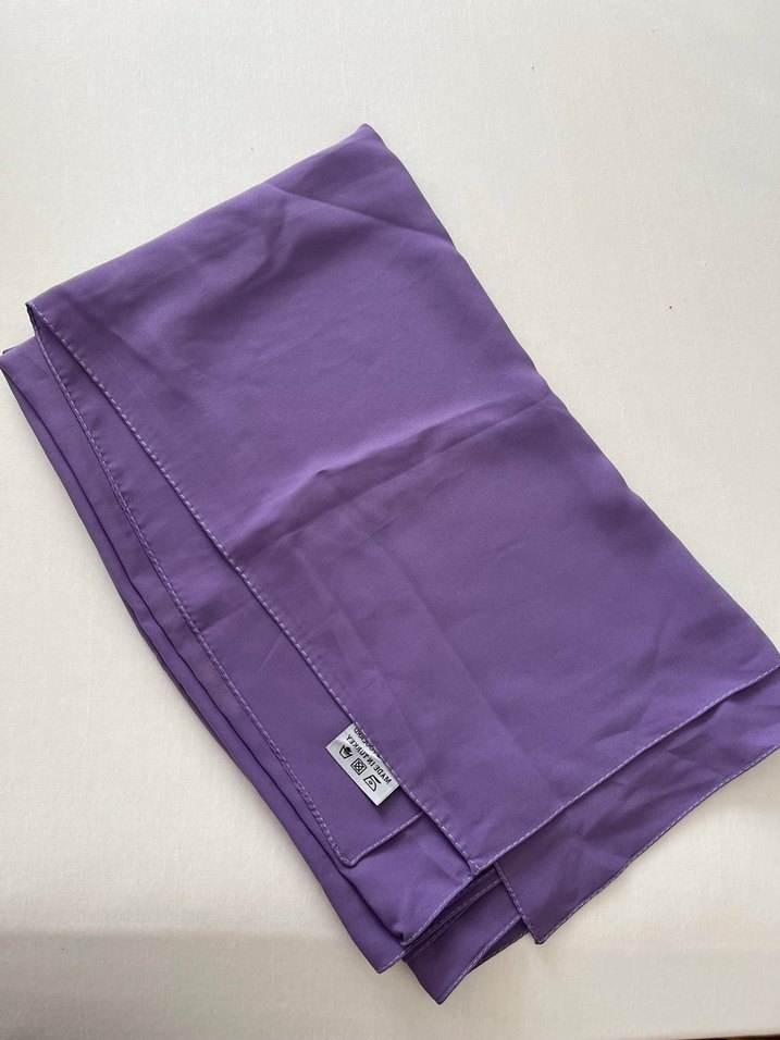 Pastel mor renkte, saten dokulu ve drapeli tasarıma sahip kadın şalıdır. Minimalist ve normcore tarzına uygundur.