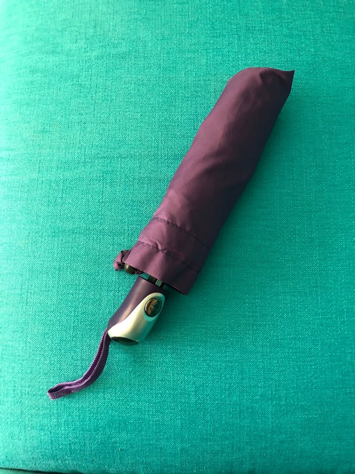 Koyu mor renkte, kılıfa sahip kadın şemsiyesi. Sade ve minimalist tasarıma sahip, taşınması kolay. ☂️