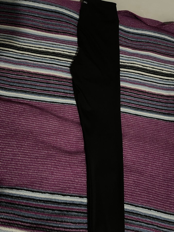 Kadınlar için elastik bel, uzun ve dar kesim tayt. Yumuşak sentetik kumaştan, koyu mor tonlarında, spor ve günlük kullanıma uygun.