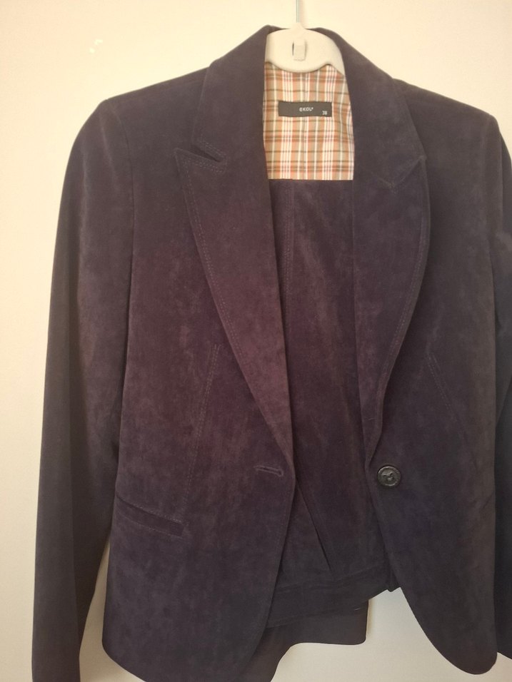 Kadın Mor Süet Düğmeli Ofis Blazeri pantolon takım