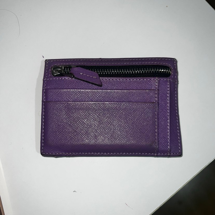 Koyu mor renkte deri cüzdan, fermuarlı bölme ve çoklu kart yuvaları ile minimalist ve çağdaş tasarıma sahiptir.