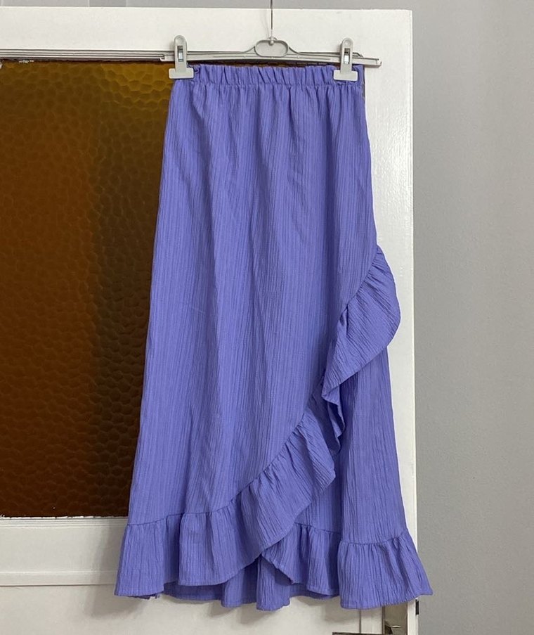 Kadın Mor Uzun Keten Fırfırlı Etek