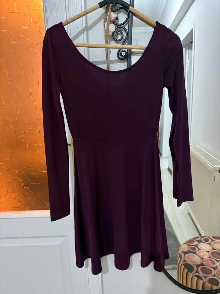 Kadın Mor Uzun Kollu davet Elbisesi