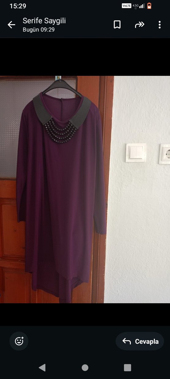 Mor renkte, uzun kollu, yakalı ve dökümlü kesime sahip, ipeksi dokulu kadın tunik. Gotik tarzda, rahat kullanıma uygun. sağlam deformu yok bı kaç kez giyindim