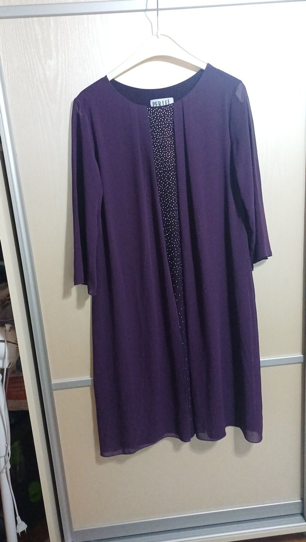 mor abiye kolları tül, fakir kol. alt eteğinde bir bölüm taşları düşmüş ama belli olmuyor tül kapatıyor zaten