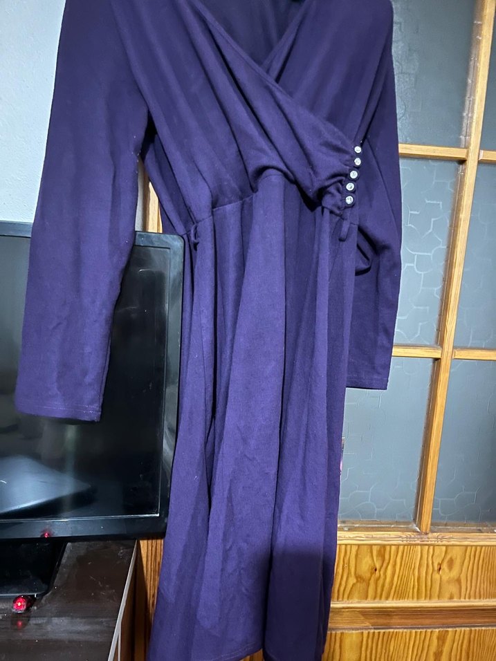Kadınlar için koyu mor renk, uzun kollu ve salaş kesim uzun boy bornoz. Desensiz ve iş stiline uygun sade tasarım. ️