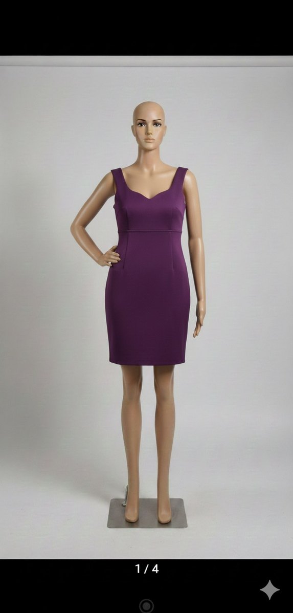 Bu mor, V yakalı, kolsuz ve vücuda oturan elbise, çağdaş ve minimalist bir tarz sunar. düğün nikah özel gün için uygun, zahmetsiz şıklık ve cesur bir görünüm sağlar.
