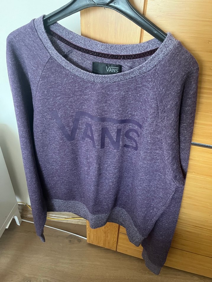 Mor renkli, yumuşak yün örme kumaştan VANS markalı, S beden, uzun kollu ve bisiklet yaka kadın sweatshirt.