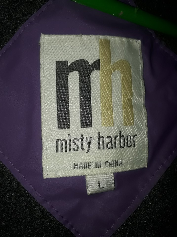 Mor zemin üzerine gri ve altın renkli logo içeren Misty Harbor kadın yağmurluk. Trendy casual ve vintage tarzını yansıtır. Çin'de üretilmiş, beden L. ️