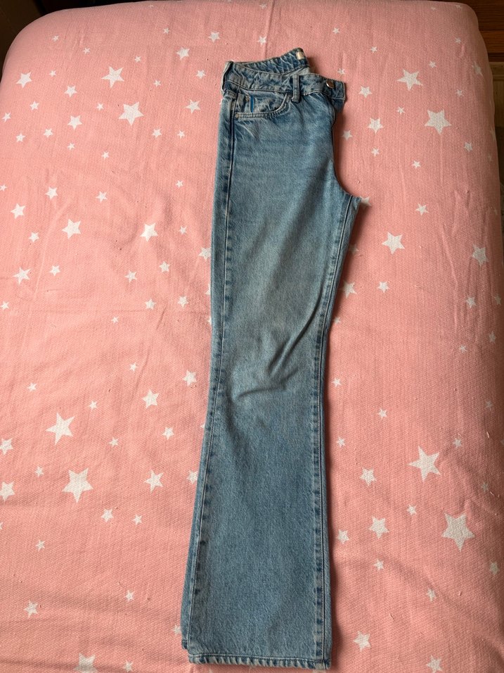 Kadınlar için normal boy, bol kesim denim pantolon.İspanyol paşa gibi bir kesimi var.25/32 bel ve paça uzunluğu.