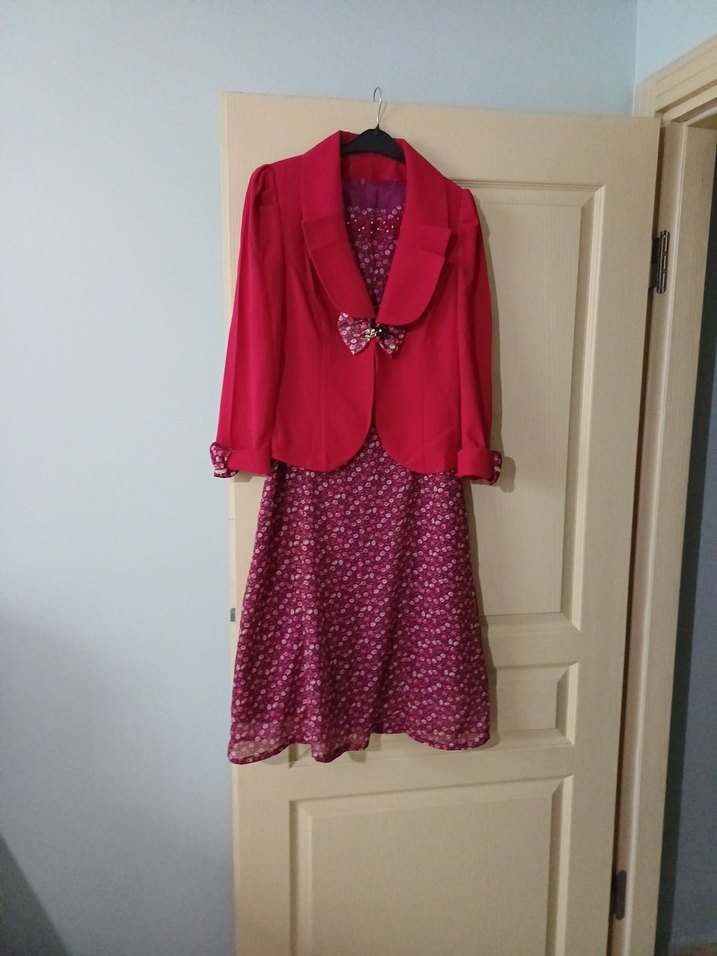 ipeksi kumaştan ofis takımıdır. Notch yakalı, uzun kollu ve düğmeli, midi boy, vintage esintili modern klasik tarzda tasarlanmıştır. 38 bedendir. yeniden farksızdır.