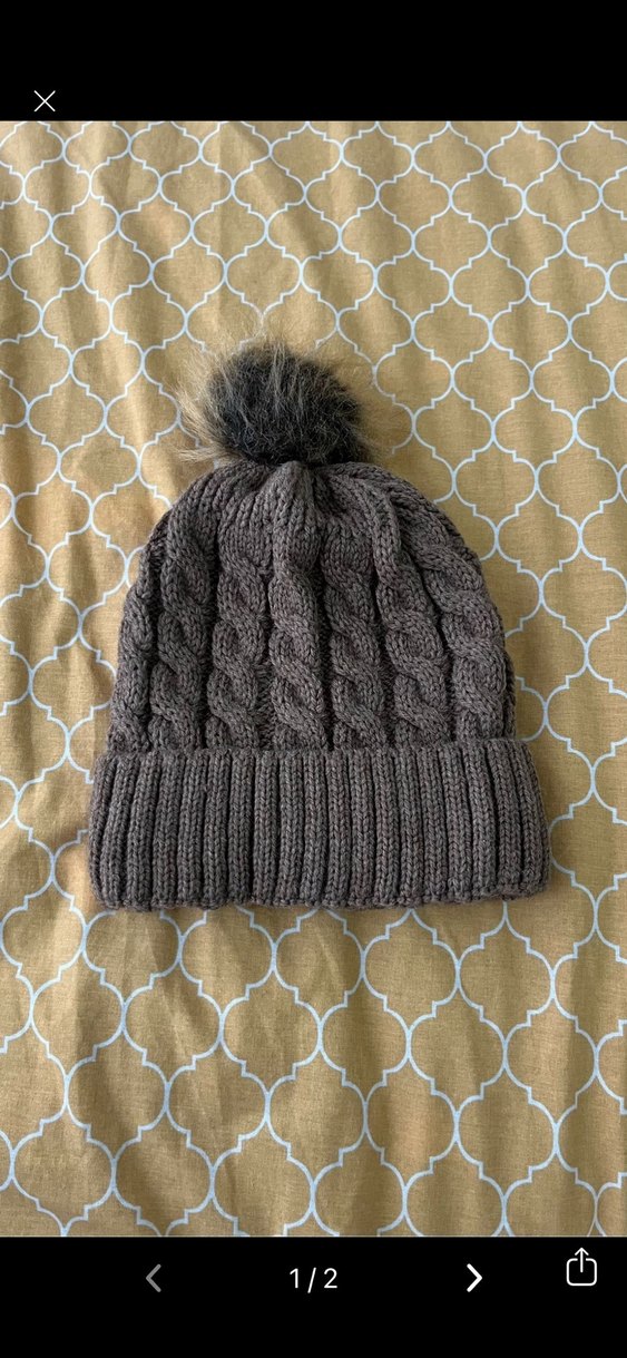 kahverengi tonlarında, yumuşak ponponlu, bohem tarzda kadın örgü bere. Sıcak tutan örgü kumaştan yapılmıştır.