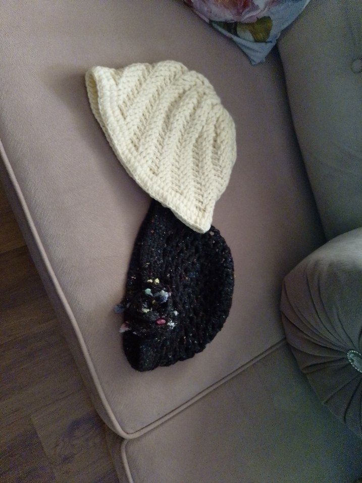 Beyaz örgü kadın bere, rahat ve şık bir görünüm sunar, trend belirleyiciler için avant-garde tarzda.