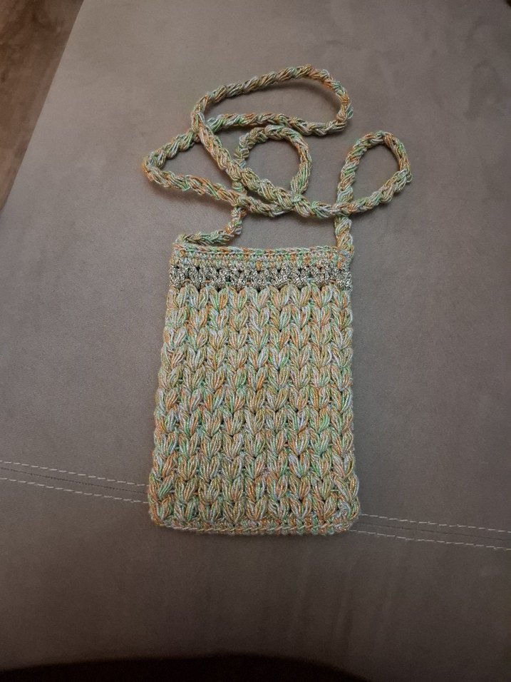 Kadınlar için örgü dokulu, pastel çok renkli çapraz çanta. Bohem tarzıyla günlük kullanıma uygun.
