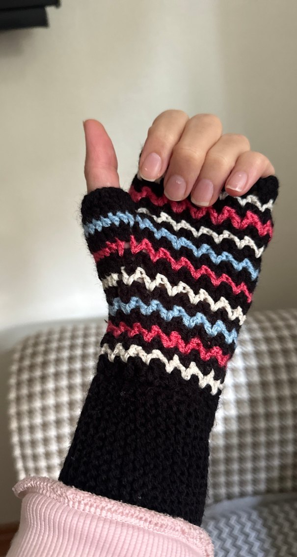 Kadınlar için çok renkli, desenli örgü eldiven. Rahat ve bohem tarz. Sıfır üründür
