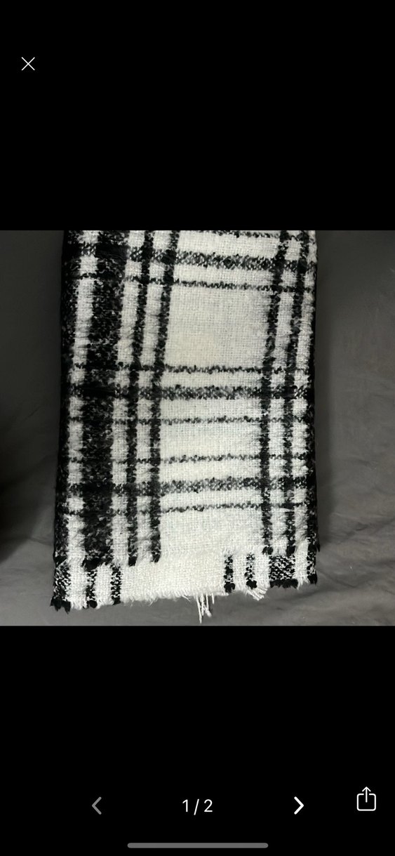 Kadınlar için gri ve beyaz tonlarda örgü desenli, yumuşak sentetik kumaştan yapılmış şal. Rahat ve çağdaş ekose deseniyle dikkat çeker.