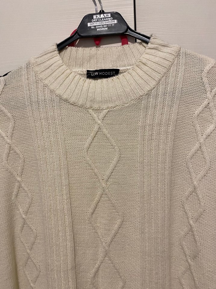 Kadınlar için gri renkli, örgü kumaştan yapılmış, bisiklet yaka ve uzun kollu, rahat kesim kazak. İnce el örgüsü desenleriyle sokak stiline uygun.