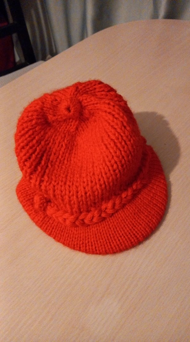 Canlı kırmızı renkte örgü kadın bere, rahat dokusu ve çevresinde örgülü detay ile dikkat çekiyor.