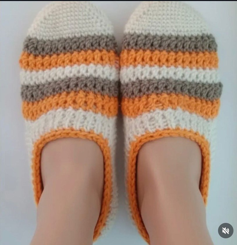 Kadınlar için örgü tasarımlı; krem, kahve ve turuncu renkli çizgili çok renkli ev patik. Günlük kullanıma uygun, rahat bir model. ‼️Ürünler sipariş üzerine yapılacağı için alıcıların sipariş oluşturmadan önce mesaj atması gerekmektedir.‼️