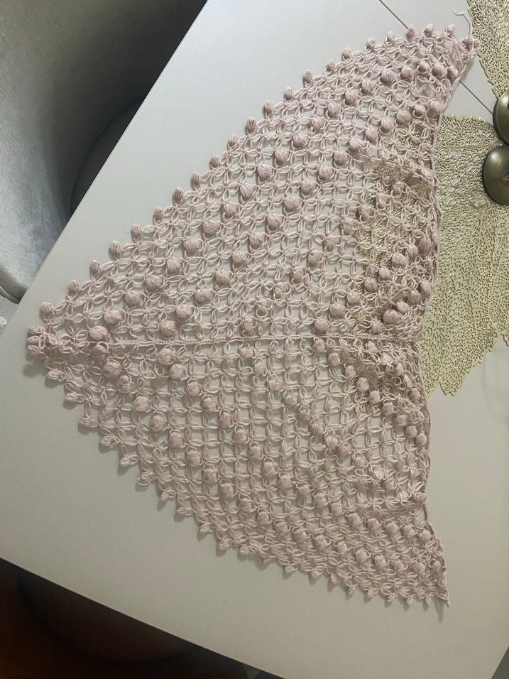 Pudra renkli el örgüsü kadın şal kullanılmadı kusursuz