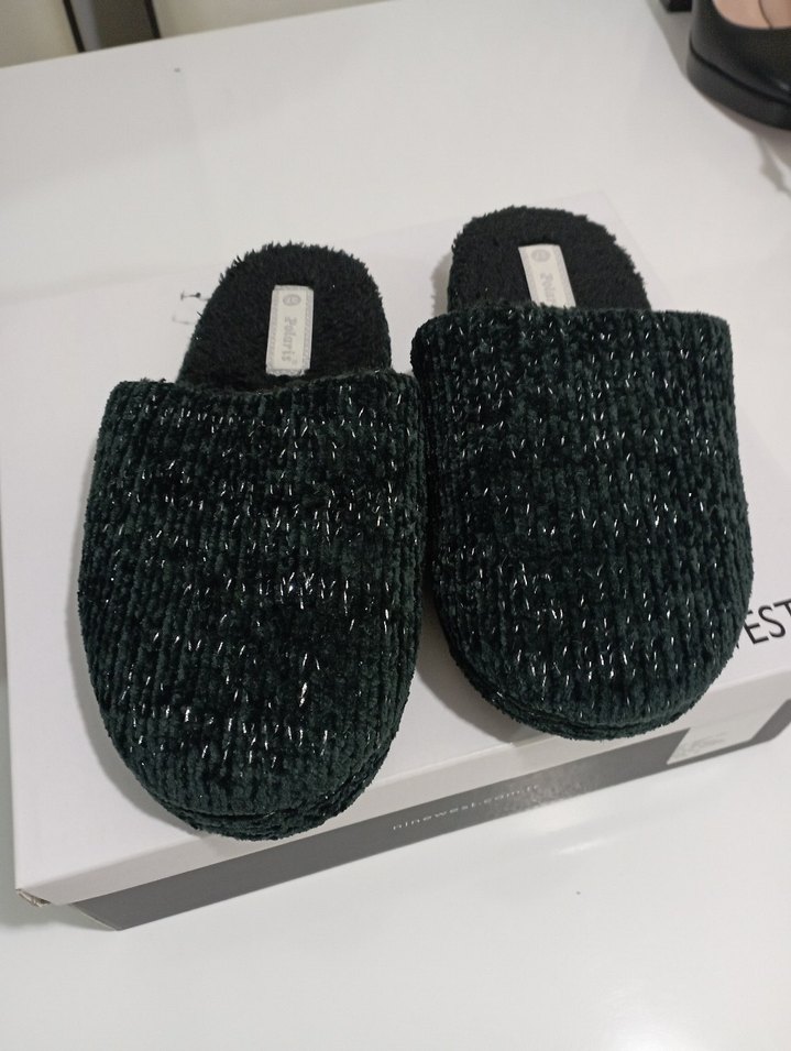 Kadın Örgü Yeşil Dolgu Topuk Ev Terliği 37 no mevcut