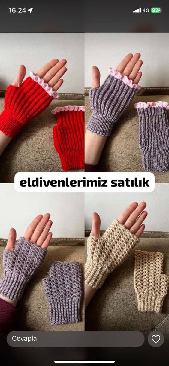 Çeşitli renklerde, örme kadın parmaksız eldivenler. Rahatlık için yumuşak örme kumaştan yapılmıştır.