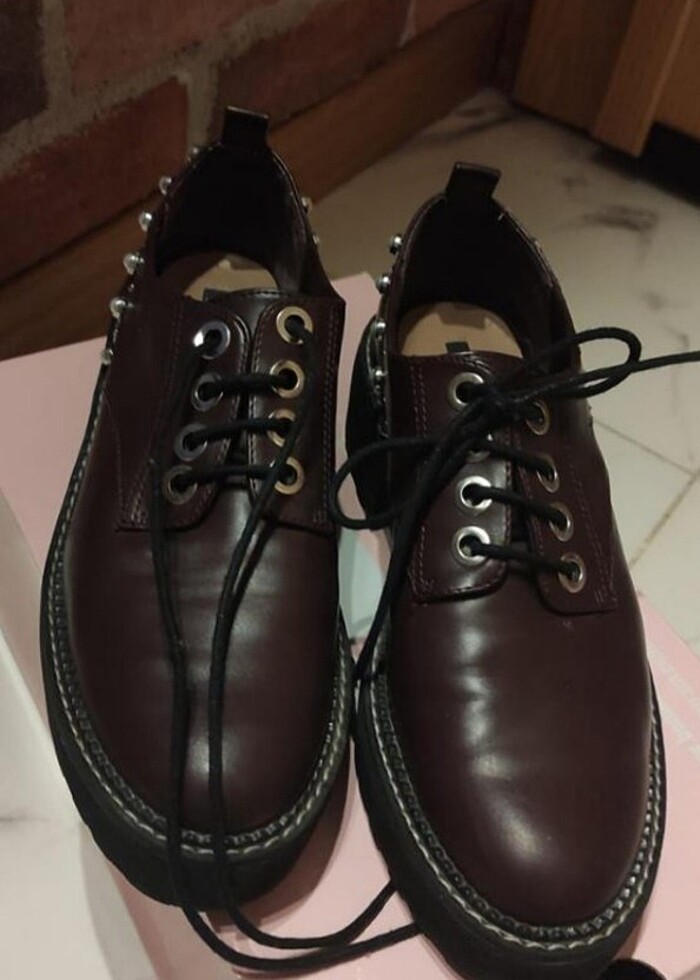 Yepyeni sıfır ayarında.. Ev içinde 1 kere giyildi, tabanı temiz. Çok şık, Stradivarius marka maskülen bir ayakkabı.. Taraklı ayaklara pek uygun değil, ince ayağa daha rahat olacaktır.