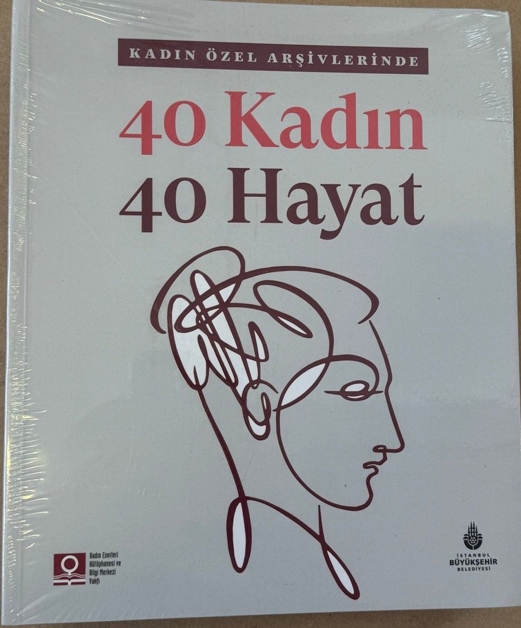 "40 Kadın 40 Hayat" kitabı, kadın özel arşivlerinde yer alan 40 kadının hayatını anlatıyor. Kapakta kadın yüzü çizimi bulunuyor.