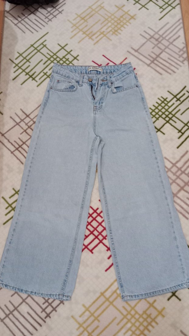 Kadın mavi denim pantolon, regular fit ve pastel tie-dye deseni ile gündelik kullanıma uygun, zahmetsiz şıklık sunar.
