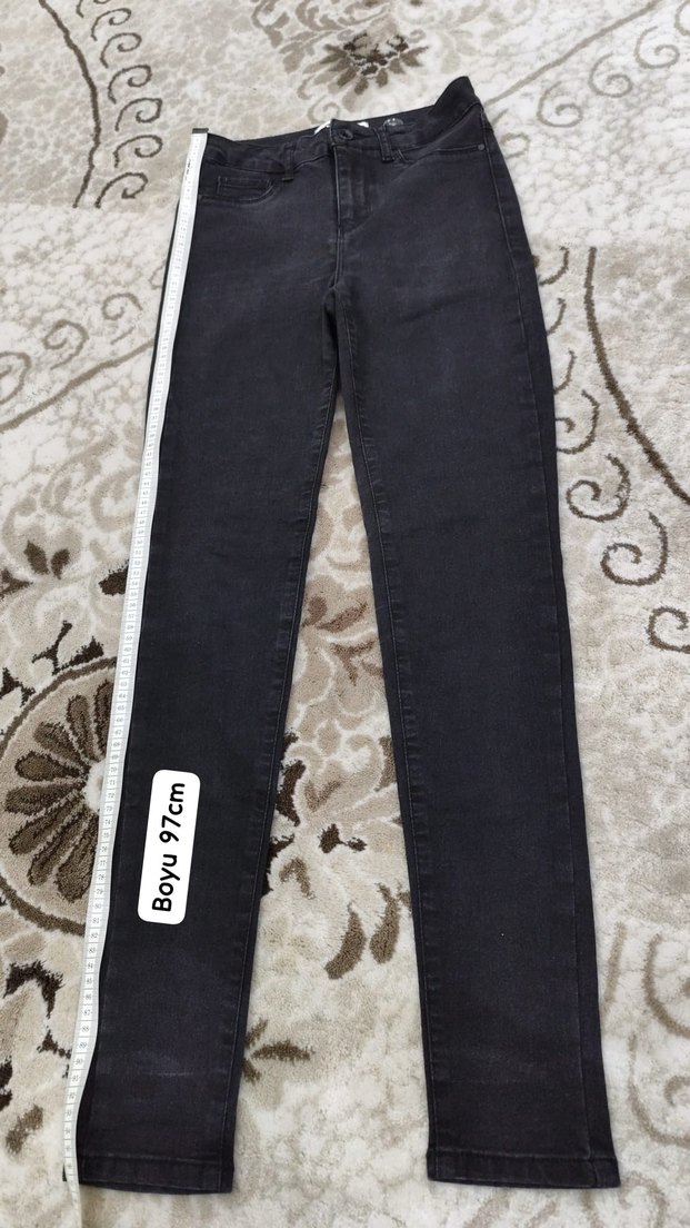 siyah renkli kadın jean, normal boyda (97 cm) ve regular fit kesimde. Denim kumaştan, günlük sokak stiline uygun rahat bir model.