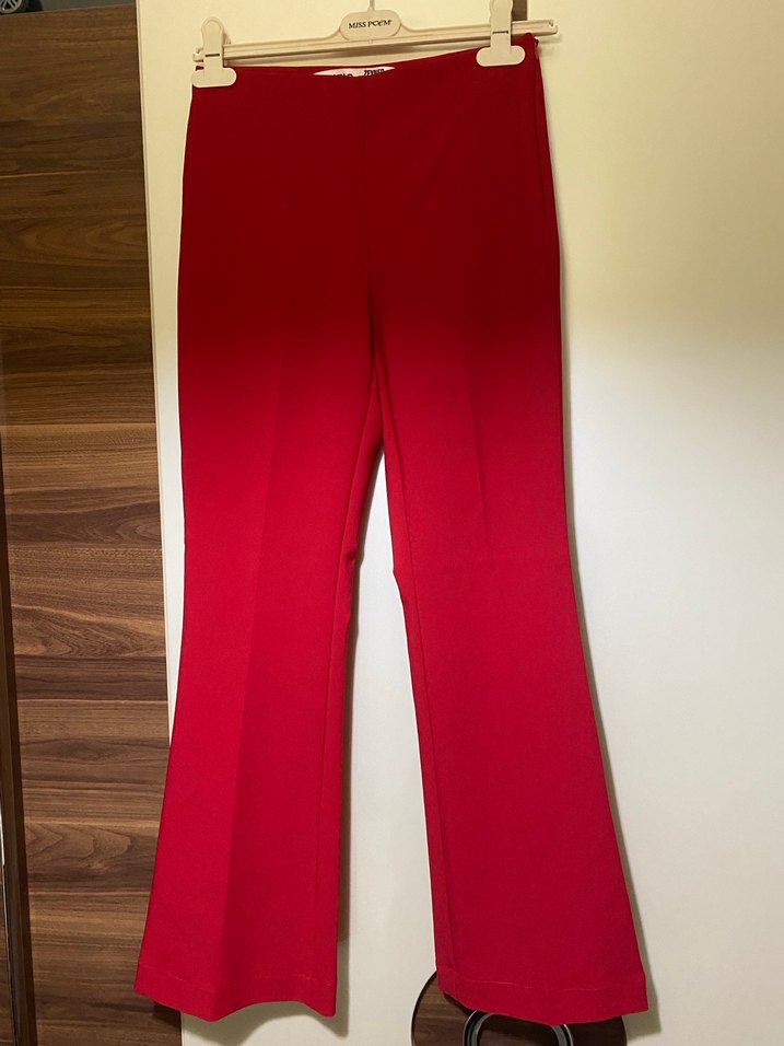 Kırmızı renkte, midi boyda kadın kumaş pantolon. Minimalist ve street tarzıyla ofis kullanımı için uygun.